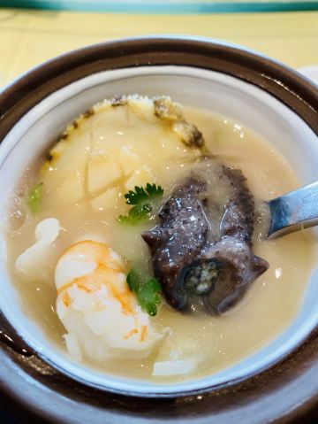 号称烟台最好的餐厅之一,在渔人码头,大厅有落地大玻璃窗可以看海,包间也有阳台,挺不错的一家。 「海鲜佛跳墙」味道是很不错的,配红醋更是美妙 「果木烤牛排」味道也不错,火候也还可以 「一品堂豆腐」有点淡 「山药瑶柱粒」山药很好吃,很入味