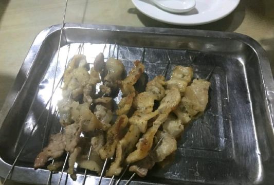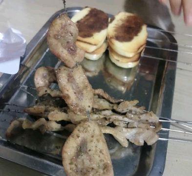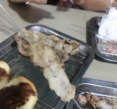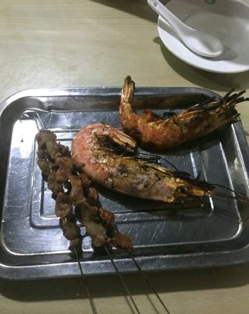 五花肉不腻,羊肉串膻味儿很重,但是我以我一个纯正的羊肉串吃货身份感觉……真正的羊肉串没这么膻的味 儿。蒜蓉生蚝好吃,清蒸扇贝很大也很好吃,烤馒 头片不刷酱的比刷酱的好吃。烤大虾味道和我自己 在家烤的差不多。整体感觉算满意了……