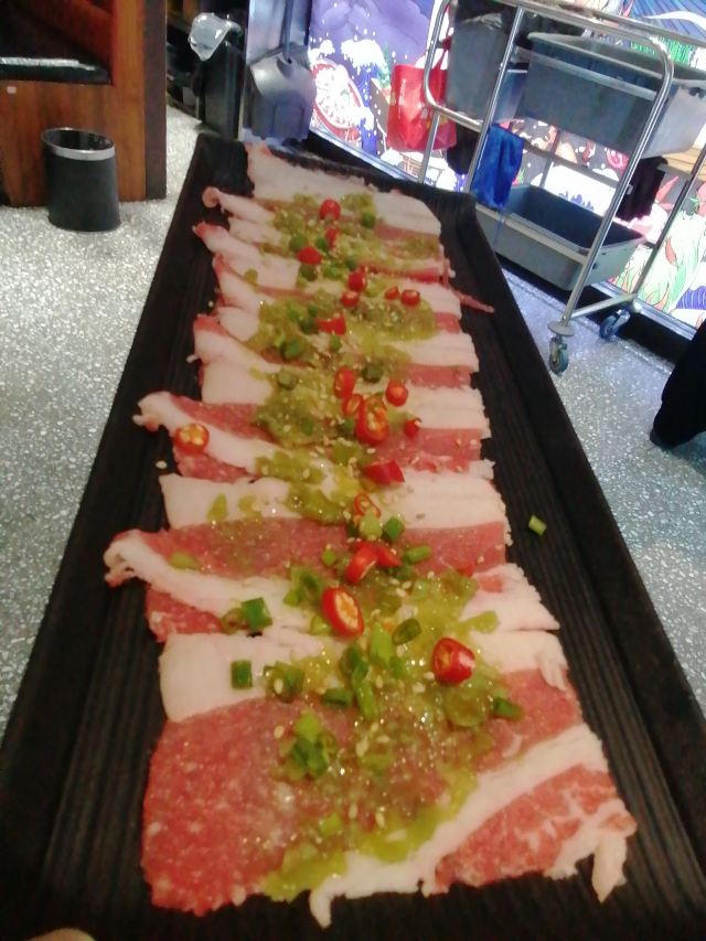 万达金街中间的牛造的场 旁边是松本町店 地铁一号线卫东站3好出口、公交车也很方便哦 [服务铃]服务: 我觉得很不错的,会主动给我们换纸 [薄荷]环境: 店里沙发椅 坐着舒服 |鲜椒雪花肥牛^这个真的好吃 很薄 很嫩 一会就烤熟了 一个人都能吃好几盘。👍 店里性价比高 !