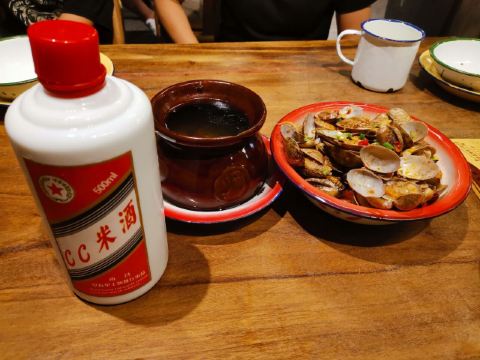 据说这是南昌的一个网红店,特别来打卡。这家是红谷滩店,装修复古,收集了很多的搪瓷碗、杯、粮票、钱币等。门口排队很长,南昌热依然挡不住来吃的热情。地道的南昌菜,挺辣但好吃,量也挺足。特色的米酒甜甜的,香香的,不醉人,非常棒。