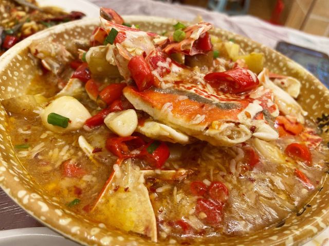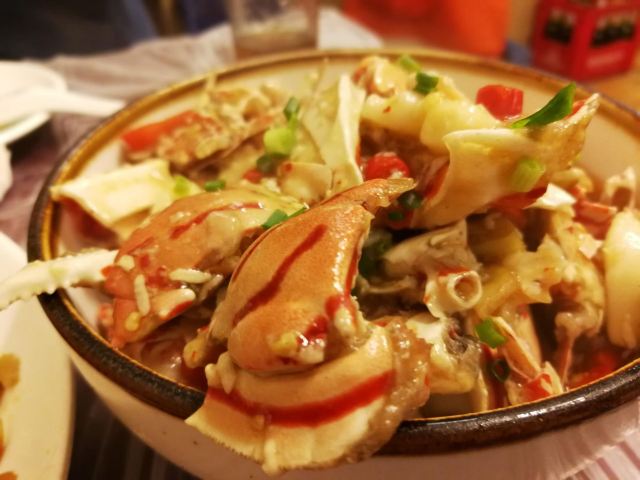 到达南昌的第一顿正餐,点了一个团购餐再加了一个汤,两个人吃其实有点多。油浸鱼的酸萝卜干是整道菜的灵魂,如果没有它,鱼就一般了。蟹脚里的酒酿是点睛之笔,辣甜鲜香。这两道菜非常值得推荐!