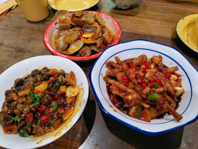 月印苍穹去南昌旅游,在网上找的网红店,从滕王阁跟着导航一路七弯八拐地走到这个位于居民区里的店,网红店果然不一般,周围有好几家食肆,只有他家每到正餐时段就排成长队,应该是味道不错而且价格也不算贵,性价比高的原因吧。我吃了两次,最长的等了差不多2个小时,这世界上吃货还是多啊。在我自己长期生活的地方,我是绝对不会浪费时间去任何餐厅排队的,但作为游客的心态嘛,就是来了一次可能以后就再也不会来了,浪费这几个小时也不在话下了。如果晚餐时段来吃,最好早一点到,比如5点前就要到,我们排了很久的队只赶上第二轮,不仅等位时间久,连上菜都等了很久。店里大部分是小桌,也有包厢,怎样预定我没有去研究。其实总的来说,我觉得口味是不错,但没到非常好的地步,毕竟也没多少秘制菜,都是常规的江西菜而已。 【万寿宫藕片】虽然是小吃的价格,但分量不算少,看来是本店必点菜,的确好吃,推荐,但如果完全不能吃辣的人,建议就别点了。 【金牌花甲】倒是挺大一盘,辣度中等,稍微能吃辣的就可以吃,江西菜的辣度和湖南、四川没法比。的确是挺香,但花甲不新鲜,肉有些软糯,而不是新鲜花甲那种带嚼劲的,所以虽然我很爱吃花甲,但这个菜觉得一般。 【柘林湖大鱼头】上来就是一大碗鱼汤,不过就是鱼头放在汤里煮熟了而已,鱼肉也还行,但对于擅吃新鲜河鲜海鲜的广东人来说,这个菜作为招牌,还是差了点意思,撑不起来一个店的招牌。 【南昌炒粉】粉可能加明矾多有点太脆了,上色是很好,就是略咸,既然盐放得多,应该偏辣,可能才口感平衡,但辣味没跟上,就感到偏咸了。 【江西粉蒸肉】还好,不算太腻,对于一个不爱吃粉蒸肉的人来说,可以一试,但没有想象中秘制粉蒸肉的特别味道,而且也并不是我吃过最好的粉蒸肉,好吃的粉蒸肉,肉质才是亮点。 【白糖糕】样子好看,吃着也软糯,但口感没有达到卖相给我的预期,吃起来也就是一个普通软糍粑的感觉,没有太大特色。