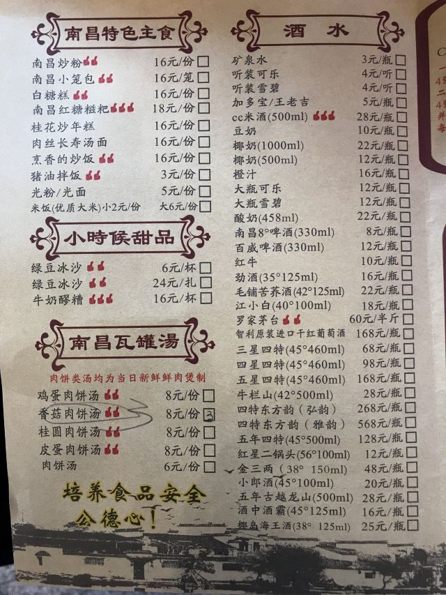油浸鱼(三代),秘制凤爪,南昌白糖糕,南昌炒粉,CC米酒,瓦罐红烧肉,红烧稻田蛙,莲花血鸭,脆皮猪脚,油浸鱼(二代),纸包鹌鹑,糟香辣藕条,柘林湖大鱼头,秘制蟹脚,绿豆冰沙,金牌花甲,万寿宫藕片(小吃),馋嘴蛙,南昌炒米粉