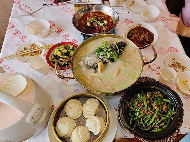 店名:堂瓦里(建德观店) 地址:东湖区建德观街149号 营业时间: 中午11:00-15:00,晚17:00-21:30 这是一家南昌本土连锁餐厅,主要做的就是赣州菜,在南昌是有一定知名度的。 本次品尝菜品主要包括: 豆葱炖鱼头、临川牛杂、馋嘴蛙、橄榄菜四季豆、手工银丝卷、CC米酒、拍黄瓜。 【口味】 豆葱炖鱼头 汤汁喝起来很鲜美,适合泡饭,鱼头及半块鱼身吃起来偏清谈,但也咸中有味。 临川牛杂 牛杂有嚼劲,入味,我很喜欢吃。 馋嘴蛙 牛蛙肉质鲜嫩,偏辣但很好吃,吃起来很爽口,和牛杂一样是我爱吃的。 CC米酒 很好喝,甜甜香香的,我把当饮料品尝,一口气连倒几杯就喝完了。 另外几样菜品体验感不强,没怎么吃或打包了。 手工银丝卷 我吃了一个,有点像馒头,我比较喜欢吃带馅的包子。 拍黄瓜 口感清脆,开胃小菜,感觉还行。 橄榄菜四季豆 因为我不太喜欢吃猪油渣,就没怎么吃。 【环境】 这家店距景区滕王阁比较近,位置还是不错的。店里虽然就一层楼门面但空间很大,设有大厅卡座也设有包间。 大厅能看到店里的电饭煲、堂瓦里语录、江西菜地图、点菜谱,也是可以拍拍照的。 【服务】 店员会过来关心就餐体验,帮忙点火。 【性价比】 江西本地菜品很多,价格实惠,总体性价比高,值得推荐。