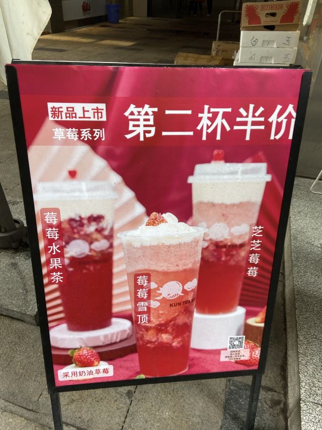 江西鲲茶,我只在南昌看见过,近些年大火的路牌这里有,可以拍照打卡。买了特价桂满陇饮料再另外买了一杯,奶油顶做的还不错,奶茶会有些甜可以提前给服务员说少糖。门口还有试饮是冰沙,喝了味道也是不错,但我们已经买了桂满陇只有下次再尝试了!
