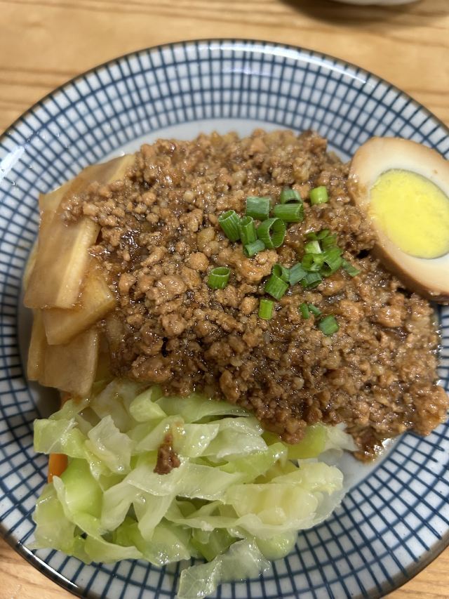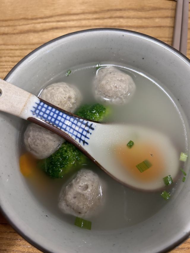位于华联银泰三楼的眷村卤肉饭,店面并不大,旁边是夸父烤串。 团购了一份经典单人餐,要了招牌卤肉饭,另外要了海带。现做等了一段时间,上菜时惊喜发现老板娘还送了一碗汤(老板娘说是牛肉熬的)。 卤肉饭分量十足,微咸搅拌米饭以后味道刚刚好,还有萝卜和半个卤蛋。海带也不错。虽然是清汤但是很鲜。