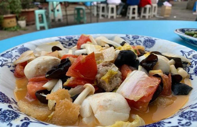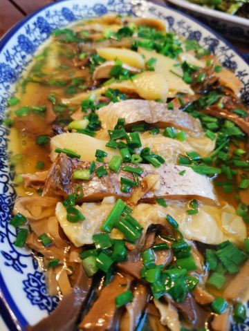 抱着试试看的心态, 点了几个菜, 谁知真是应了 那句"酒香不,'白巷子深", 醋溜鱼很入味, 绍三鲜很 鲜,螺蛳也很肥美,店家推荐的活桑糕出奇的很 吃! 最后还出乎意料的便宜, 六个人才265块!