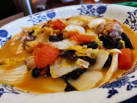 绍三鲜,炸臭豆腐,一口味香肠,白切鹅,绍兴双臭,酱油河虾,活桑糕,糖醋小排,蛋黄南瓜,腊肠腊鸭双拼,鱼香肉丝,臭豆腐,干菜四季豆,鹅肉,番茄鱼片,番茄爆旦,酸辣土豆丝,干锅包菜