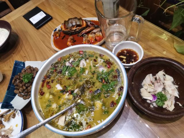 YoYo_3O1U8T5M1.醉蟹,非常难吃,超级腥,根本下不了口,不知道好评都从哪来的 2.醉鸡,一般般,号称是醉鸡,就是盐水煮了的感觉,只有盐味 3.酸菜鱼,无功无过,也是没啥味道 4.茴香豆,也是盐水蚕豆的味道,优点是壳是软的,不用吐皮 总体感觉很失望,看着看着好评很多,想来尝试,结果入了大坑,本来还加了菜,结果服务员没有下单,中途催了两次服务员,都说帮我们去看看,一直吃到最后别的服务员才过来告诉我们并没有点这道菜,服务真是另人不敢恭维;最后一张图是吃完了的图,只有水喝了大半,别的都剩了很多,浪费了很可惜,但是确实难以入口,慎入!!!