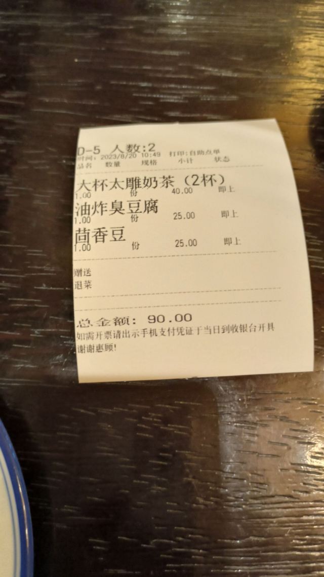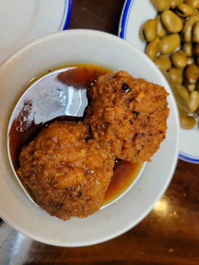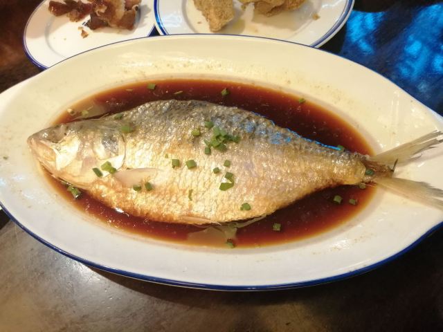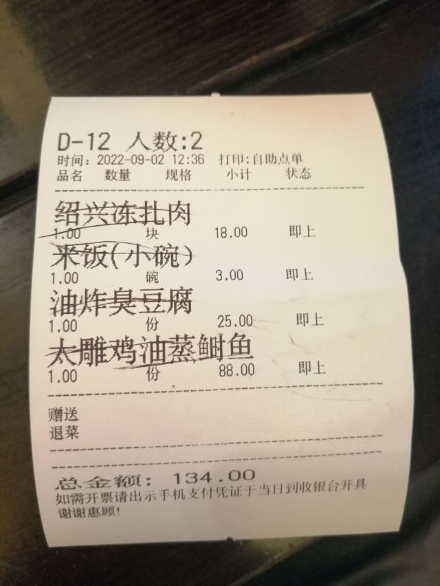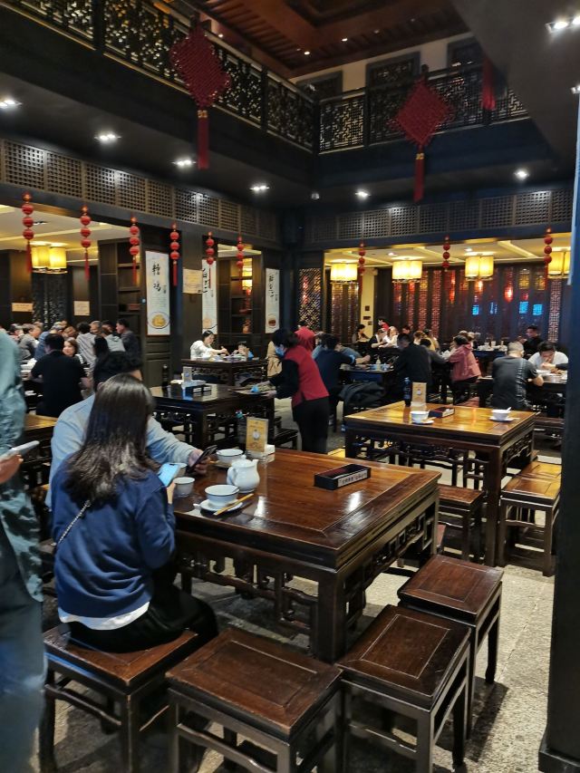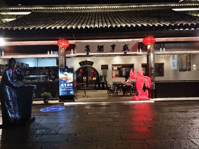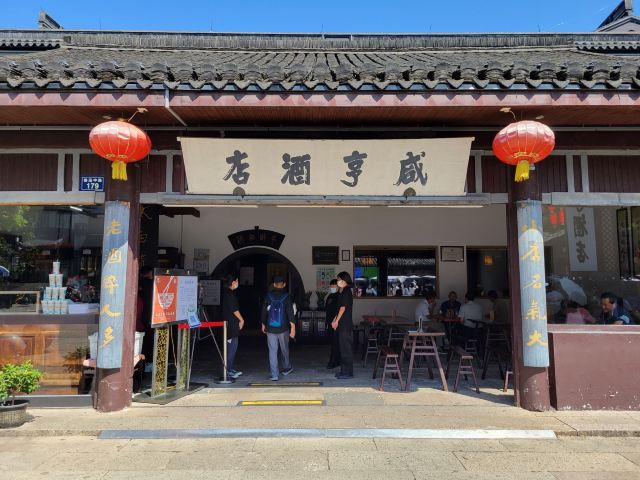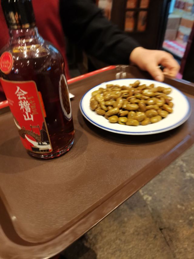 鲁迅故里旁边的咸亨,也是咸亨酒店的中餐厅。最沿街面的是个小酒馆,有卖黄酒和茴香豆。里面就是餐厅。店面很大,很有中华老字号的特色。 到绍兴怎能不尝黄酒,点了太雕王,38元一大杯。感觉偏甜,太甜了吧。臭豆腐几乎是每桌必点。最亮眼的应该算是生醉蟹,38元一只,有点小贵,居然比绍兴饭店还要贵10元。但是品质很好,蟹很大个饱满,酱油鲜甜,而且都剥好的,很干净,吃完口不干。 服务挺热情的,价钱总体也还好比较实惠。