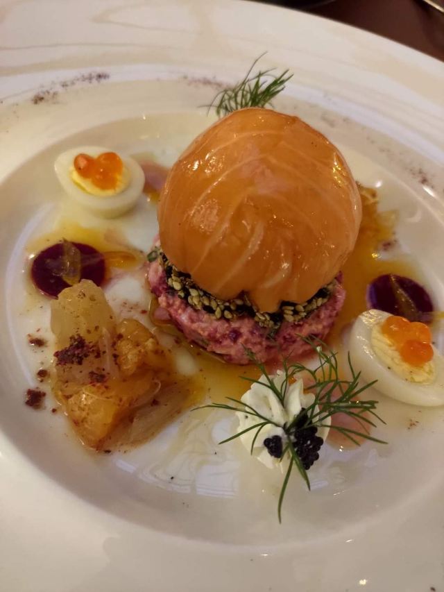 豌豆牛排,芥末柚子牛肉,牛排配土豆泥,Beef tartare,scallops,Moroccan Braised Lamb ,蟹肉南瓜泥,提拉米苏,烤鸭腿,烤羊小腿