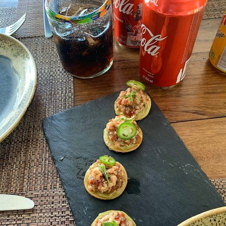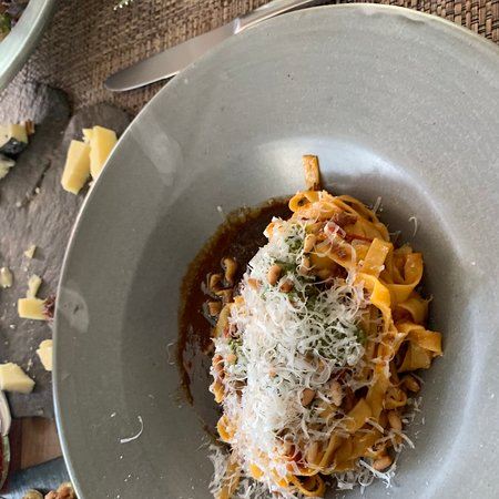 我先吃了小青椒作为开胃菜,然后吃了海鲈鱼配骨髓莎莎酱作为主菜,还有意大利面,最后我吃了他们的香蕉面包作为甜点。这里整体都不错,期待下次见面