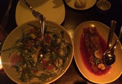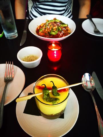 Bacon Wrapped Dates,Diver Sea Scallops,Sugarcane Tuna,Ecuadorian Shrimp Ceviche,Thai Mixto Ceviche,Sangria Blanco,Sea Scallop Ceviche,Whole Roasted Bronzino,Vanilla Flan