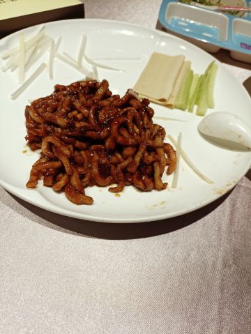 YoYo_7U2L9L2A五一定亲选了这家,大气十足 今年五一小长假没出去玩,不过真高兴,妹妹结束八年马拉松,终于签订人身契约了! 选了这家店,环境真好!地方很大,选了个包间,两家人坐在一起宽宽松松舒舒服服,开开心心吃着饭,畅享两个人的未来。 推荐菜品 荔枝木烤鸭:鲜嫩的烤鸭,外焦里嫩,一口咬下去,还有荔枝木的香味,爱了爱了!! 不得不说,片鸭子的时候发生了一件趣事,小朋友无聊盯着烤鸭数数,大家好奇问他数什么呢,这孩子直接说了一句“烤鸭片了80刀”,这孩子真牛,厨师更牛,这刀工!!赞!! 百味油爆虾:鲜美Q弹,虾皮酥酥的,非常适合我这种懒人,不想剥壳直接要,也特别好吃!! 砂锅椒麻鸡:麻麻辣辣的鸡肉还伴随着藤椒的清香在砂锅中翻滚,辣的开胃不呛鼻,就想一口接一口。 青椒鲈鱼:鲜嫩的鱼肉搭配青椒的清香,好吃又美味!! 五福饺子:每一个都是纯手工现包,现点现做,确保新鲜美味。每个饺子皮的厚度严格控制在不超过 0.5 厘米,皮薄馅大,口感绝佳。 🏠店名:盛百味·家宴餐厅(霸州分店) 📍地址:迎宾西道北侧182号