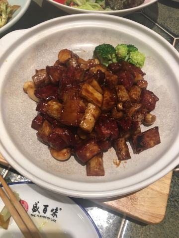 肉三鲜饺子,果木烤鸭,鲅鱼饺子,铁棍山药红烧肉,蛋黄南瓜,十八秒牛肉,京酱肉丝,水煮鱼,宫保鸡丁,百味小炒,开边蒸大虾,咸蛋黄焗南瓜,香卤牛肉,大葱鲜肉,麻婆豆腐