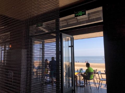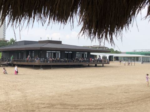 昌黎阿那亚小镇黄金海岸的 Breeze Bar海风酒吧,是建在沙滩上一座建筑。炎炎烈日下,坐在宽大的屋檐下,吹着海风,欣赏着大海的波浪,品着美酒、咖啡,十分浪漫惬意。
