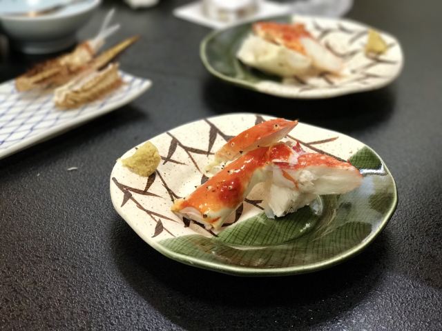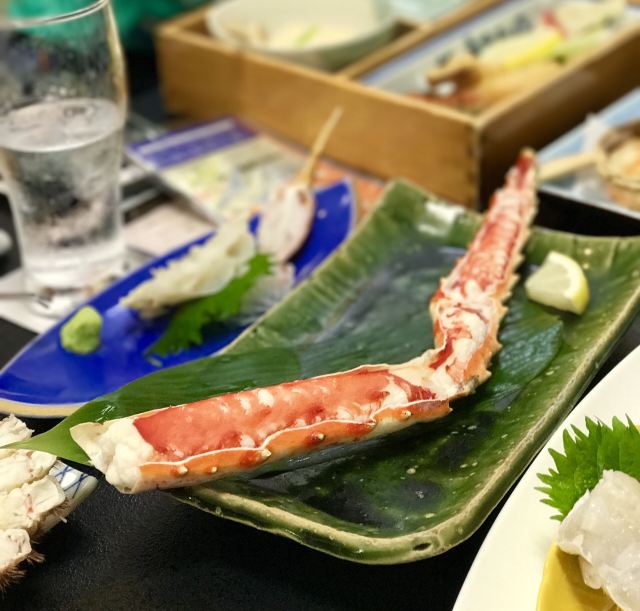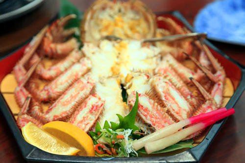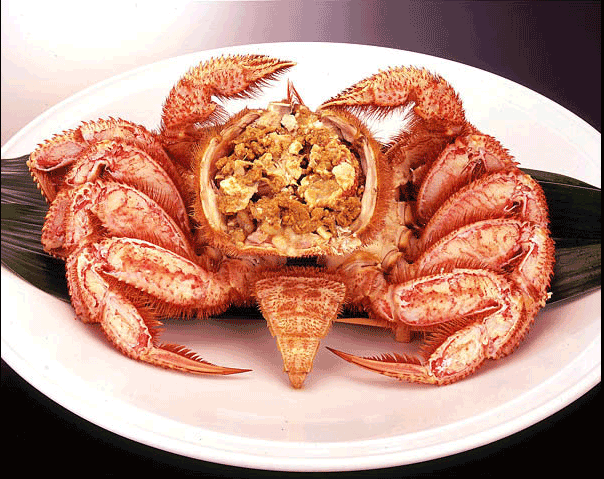 烤帝王蟹蟹脚,蟹肉豆腐,天妇罗,蟹斗, 蟹料理,杂烩粥,蟹肉烧卖,煮红毛蟹,松叶蟹小火锅,北海道寿司,蟹料理