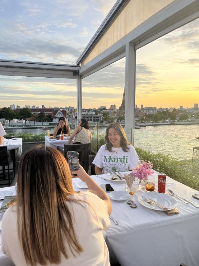คู่หูฝ้ายเกม当您到达维拉顶时,您将不得不对湄南河和郑王庙的景色引人注目。✨ 屋顶上的气氛是开放的,露天,让河风轻轻地吹过,晚上浪漫的气氛。晚上认真🌙 这里的菜单是泰式融合/海滨菜肴,有出色的泰国菜。和融合了国际气息的融合,例如Fettuccini Tom Yum Goong,这道菜是亮点。获得大河虾使用深辣和醇厚的奶油酱🦐 ,配上西红柿羊肉或菜肴等肉菜单。Moo Yang Bai Cha Phu 这样的巴士,无论是香气还是味道都不错🇹🇭 价格有点高,因为它是屋顶,风景和豪华酒店的服务。但是很多评论说是因为景色是合理的。 +气氛有助于提高体验🎯 至于服务,它受到好评 — 即使在拥挤期间,也要照顾好客户。 注意: • 如果下雨,风大或雷雨,只有开放区域可能会感到不舒服。 • 一些菜单可能需要提前预订。尤其是在假期或晚上 • 饮料/食物的价格可能高于城市一般商店。 总体而言,如果您想要浪漫的晚餐,以上 Riva 非常适合。 /河边晚餐日落景色&湄南河曲线