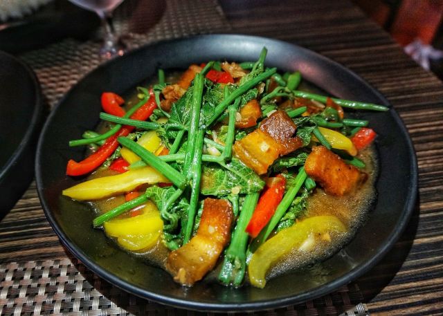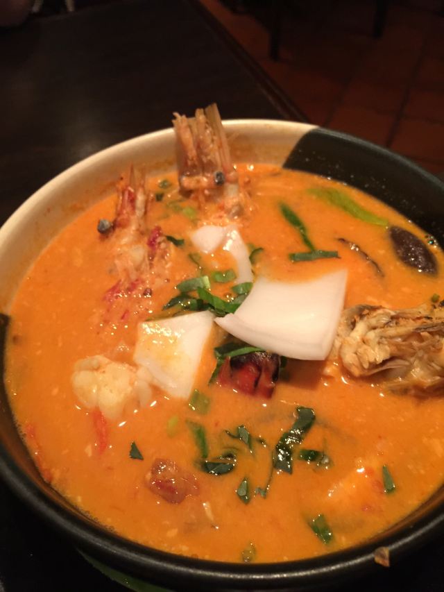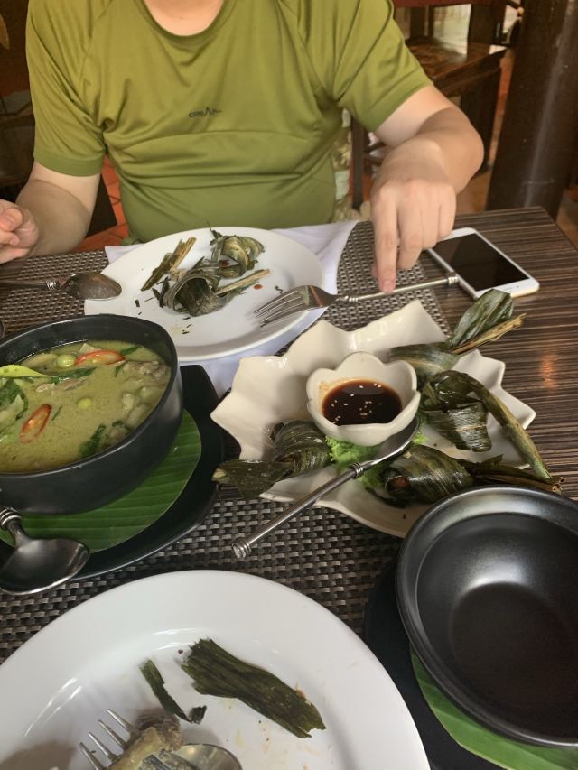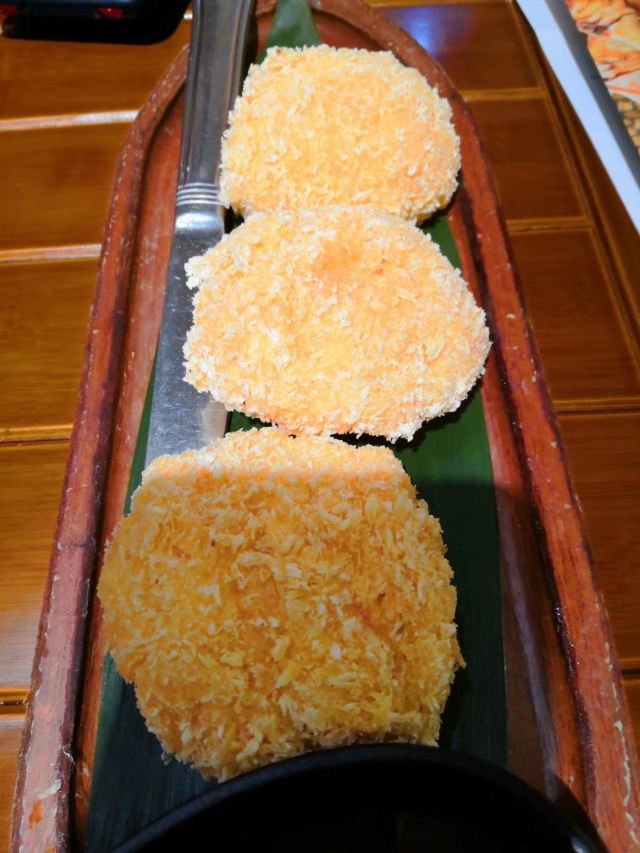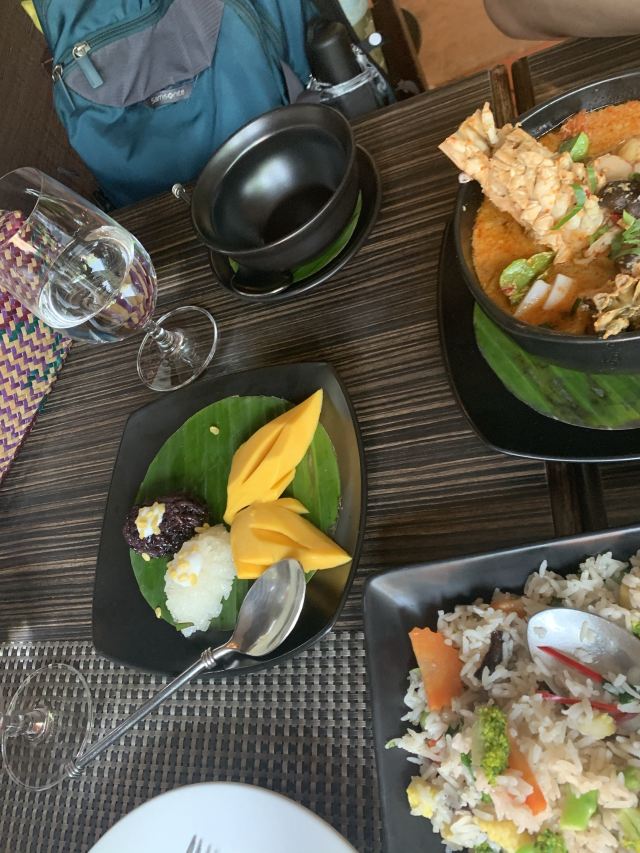 冬阴功汤,芒果糯米饭,蕉叶炸鸡,虾饼,猪肉绿咖喱,水百合沙拉,碎虾沙拉,烤猪颈肉