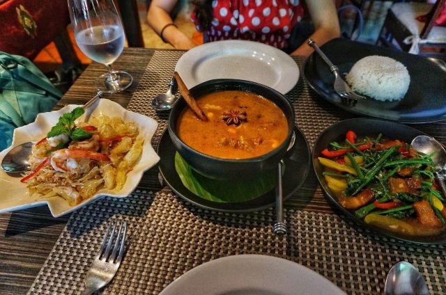 RUEN URAI FINE THAI CUISINE这是泰国曼谷十大著名餐厅之一,餐厅建在一个十分僻静的私家小院内,有露天游泳池和茂密的树林,环境非常的优雅。来到这里一定要吃这里的咖喱拌饭,咖喱汁香甜可口,米香四溢,浓浓的咖喱味在嘴巴里来回回荡,真的是太好吃。