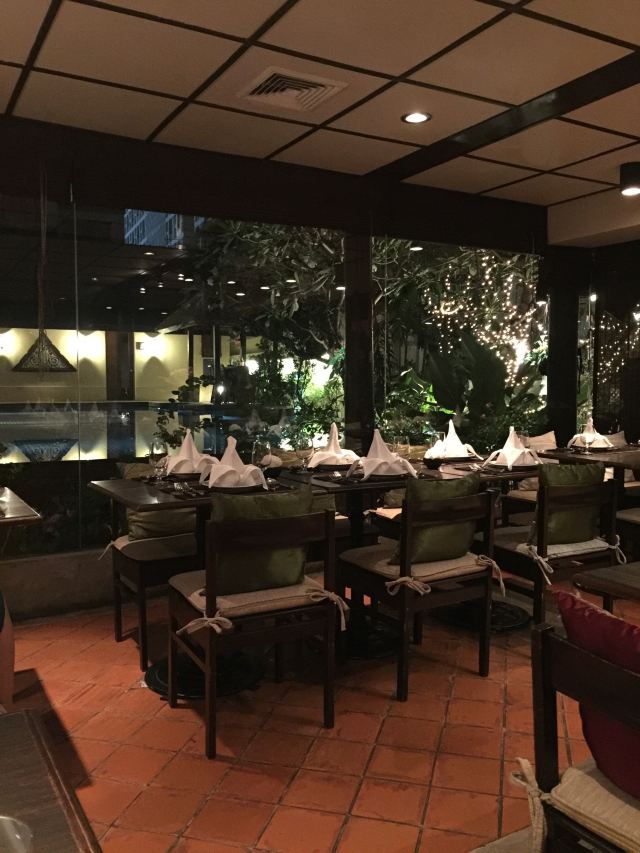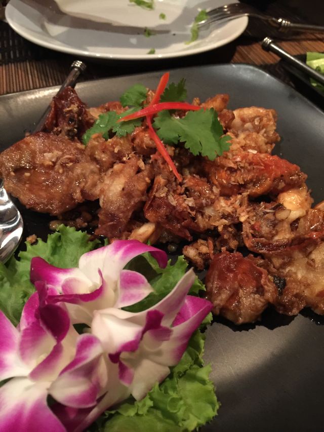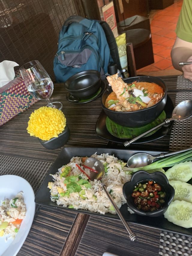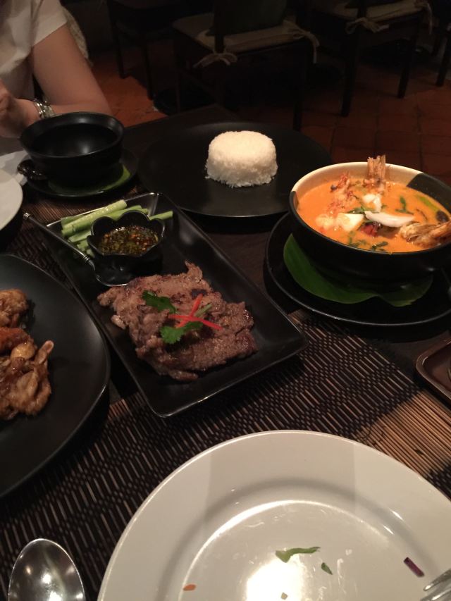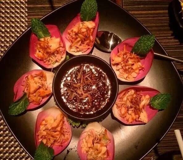 伊翎这家店距离住的酒店不远,所以就走过来找,根据谷歌地图上找。 【位置】首先找了ROSE HOTEL,问了院子里的保安,他就告诉我们要往里走了,很幽静的一处小院子,从外面看不太起眼的样子,里面算是别有洞天吧。 【环境】非常有情调,感觉挺适合情侣约会的,我们去的时候窗户旁边的位置都有预定了,这个店是一个算是比较古老的建筑吧。外面就是游泳池,店里的灯光也不算是明亮的,走的情调路线 【服务】店员和菜单都是没有中文的,我们的服务员会说一点点,她的父亲是从广东去泰国的,但是她也就是会说个米饭什么。但是非常尽心尽责的帮我们点菜 【口味】#沙拉#忘了点的什么什么沙拉了,看着样子挺好吃,但是其中卷了薄荷叶,句接受不太了有种八角味道 #咖喱软壳蟹# 味道非常不错的一道菜,虽然我们是海边的人经常能吃蟹子,不过这边的做法跟我们的做法是完全不像的。我们讲究原汁原味,这种软壳蟹吃起来也别有一番风味。 #烤猪颈肉# 别人推荐的,味道确实是也不错的 #冬阴功汤# 鲜辣~比较好喝,但是不爱里面的某种香料 【总评】挺不错的一个店,不过价格贵贵的,还收取10%的服务费和7%的消费税。如果离得近可以来尝尝.另外刷卡不能刷银联哦