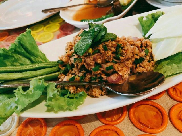听名字不好听,其实环境不错,东西好吃,罗非鱼煎得不错,泰国菜的香料味道不错,服务态度也很热情的,只要慢慢交流语言不是问题