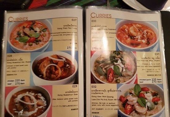 芒果糯米饭,冬阴功汤,菠萝饭,红咖喱软蟹壳,炭烧猪颈肉,榴莲糯米饭,海苔豆腐肉末汤,咖喱,鱼饼,大虾爆九层塔,椰奶鸡汤(小),菠萝咖喱虾汤,椰子水