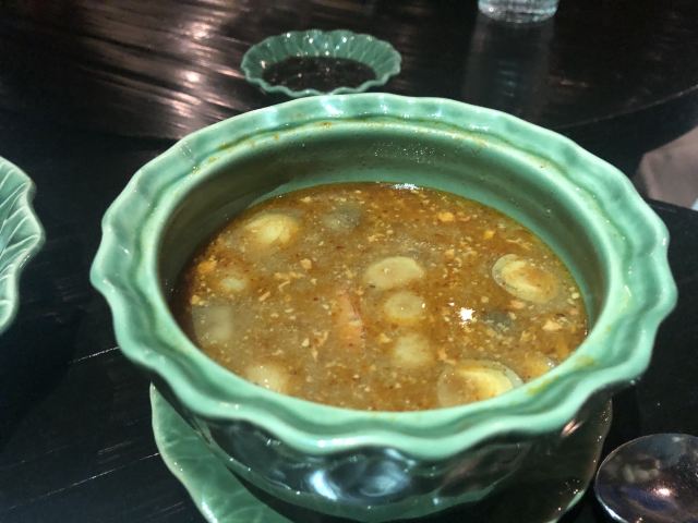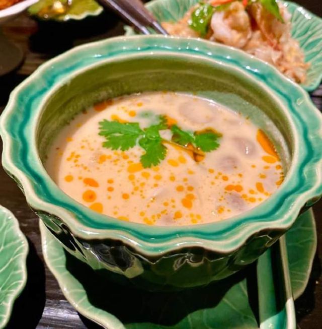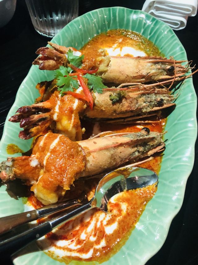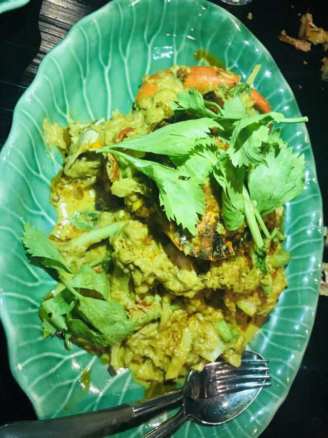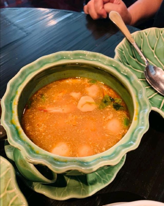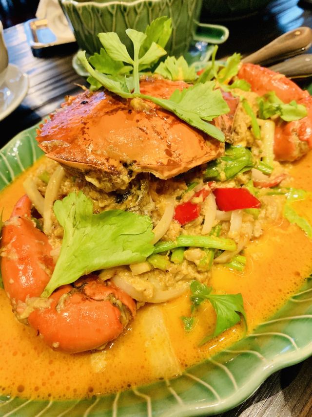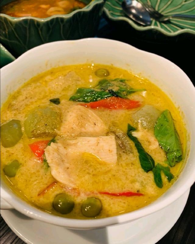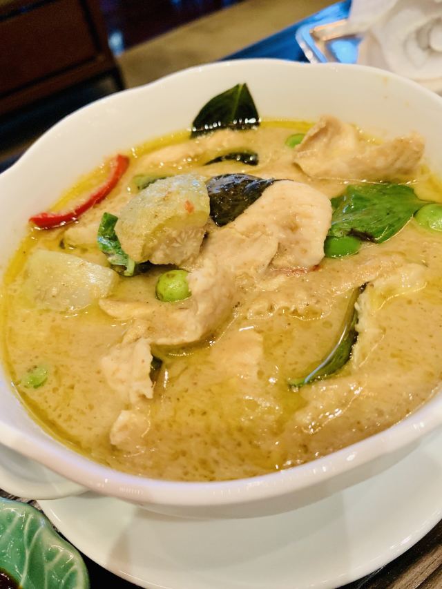 Yolanda_zy开到曼谷正式第一餐,选择了四面佛大厦的米其林餐厅。餐厅用餐环境不错,客人并不多,没有预订,位子还有许多,较安静,氛围不错。为了方便中国客人点餐,专门配置平板带图的中文菜单。根据网评推荐,自然咖喱蟹,肉是拆分出来的,吃起来方便,就是蟹肉酱的感觉,配点白米饭很不错,不过这里一份米饭真心量上有些少。冬阴功汤点了一小份试试,与众不同的是汤内有虾膏,太喜欢这味道了[调皮]绿咖喱鸡做得普通寻常,虾肉春卷感觉就是单个下被皮子包裹一下,只是炸后脆脆香香。还有一个特别的椰子饼,甜中带咸,口感丰富,个人很喜欢,但也有吃不惯的。这里的米其林总体没有惊艳到,感觉主要是较精致的拆肉给餐厅增加了分数,味道上也就传统普通,性价比不高。
