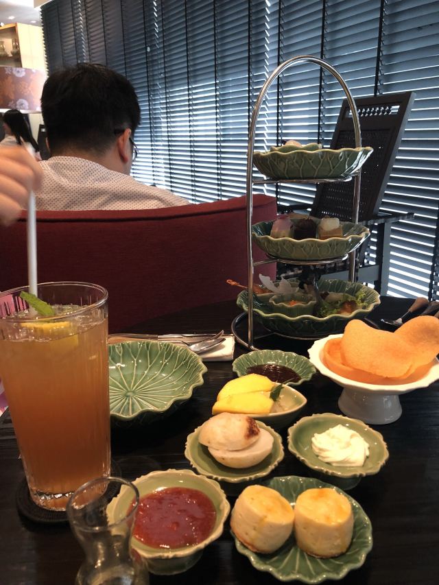 爱侣湾茶室位于Erawan Bangkok 2楼曼谷艾尔文君悦大酒店内,黑色木地板和木质家具,显示出一股优雅的东方古典,店内环境清爽干净,气氛很好。 餐厅提供正宗的泰国美食和中国、印度、斯里兰卡所产的精美茶叶。 泰餐包括如青木瓜沙拉,鸡肉沙爹,香汤咖喱等。泰式下午茶不同于传统英式下午茶,用泰式点心替代了三明治等咸点,甜点也独具匠心,唯独保留了英式松饼,松软湿润也不错。