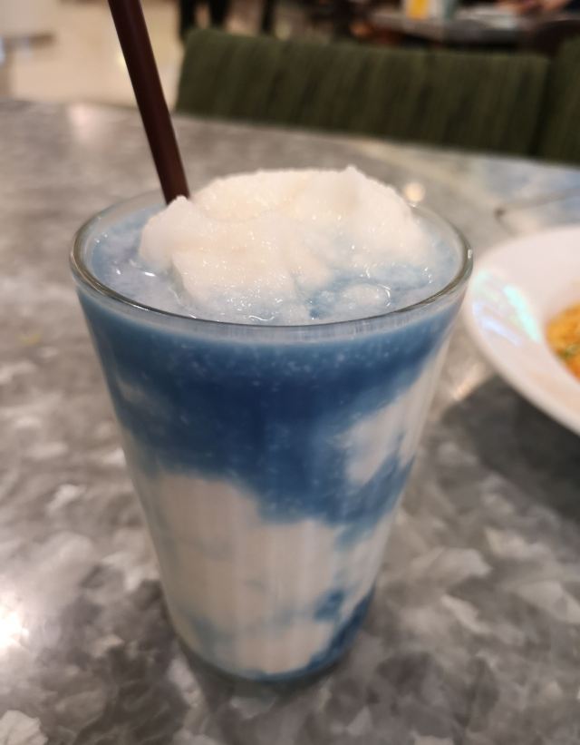 Banana Leaf开在曼谷一个商场里 商场十点半开门 有很多人早早到了商场附近等待 开门后到了店铺 他们说十一点营业 十点五十时候已经可以点菜了 我点了招牌咖喱蟹,打抛猪肉饭和蝶豆花椰子汁 泰国不愧物产丰富,拆蟹肉可以做成一盘菜,又甜又腻又好吃 打抛猪肉饭菜叶脆肉质嫩 蝶豆花椰子汁颜值高