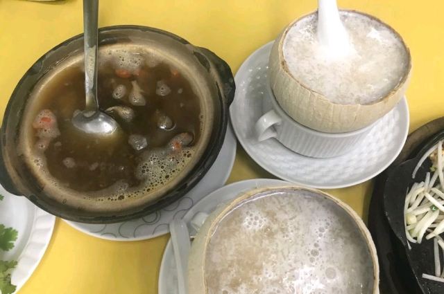 _TI***db鲨鱼翅汤令人愉快,鸟巢椰子是独特的体验。有点贵的一面,但口味使它值得。