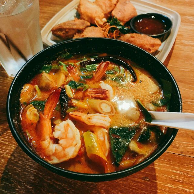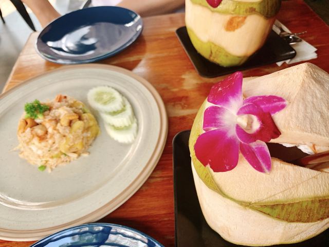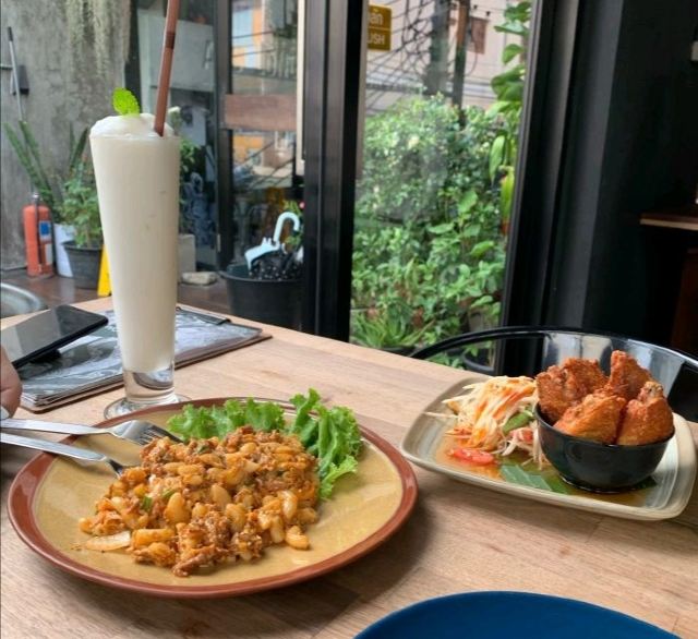 Sit and Wonder到达曼谷后的第一顿午餐❤️前一天航班到达的时候已经晚上12点了,只能酒店附近随便吃点垫垫肚子~醒来就去觅食,这家店评分超高,素坤逸55酒店一路导航过去大约800米,店不大在二层,半开放式有露台位置,菜炒鸡好吃啊!!而且!还很便宜,结账时发现不到500泰铢,惊呆了!