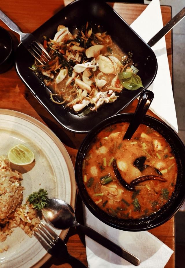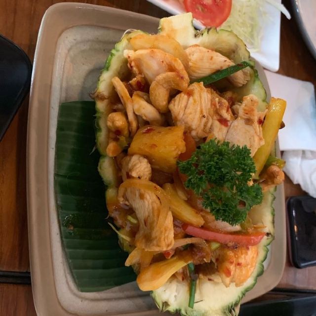 冬阴功汤,炸鸡翅,芒果糯米饭,腰果鸡片菠萝,炒河粉,炒空心菜,Salad Sit&Wonder,Deep fried marinated pork,SANDWICH