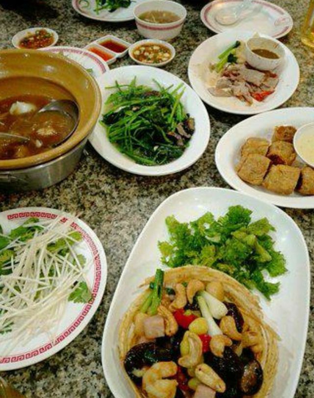 本来准备去建兴酒家,但是排队感觉到地老天荒,为了赶场就进来这家评价也还不错的店子,是真的很不错呀!(⁎⁍̴̛ᴗ⁍̴̛⁎) 冬阴功,来泰国第一顿正餐必须吃一锅,酸辣爽口,开胃!拌米饭太好吃了!! 什锦蔬菜,竟然有🦐?!泰国的蔬菜炒的都很好吃,特别有滋味~ 炒饭&铁板牡蛎,都没踩雷,妥妥好吃,炒饭瞬间空盘[耶]