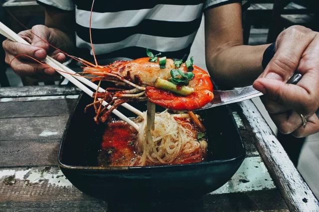 吃不惯冬阴功的味道,龙虾面就只吃了龙虾,还好点了小份的,不过服务员推荐的海鲜炒面很好吃!炒的粒粒分明!果汁选的什么蔷薇果饮品,上来发现就是酸梅汤的味道。谷歌很强大,很顺利的找到这家小店,离酒店很近,误打误撞太幸运啦~