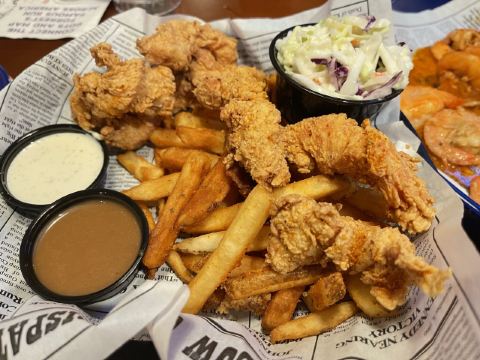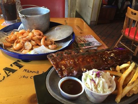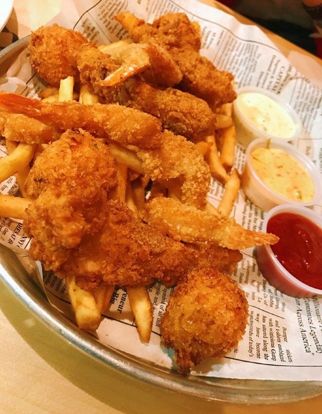 Bubba Gump Shrimp Co.很有名的网红餐厅,看过《阿甘正传》的都会来打卡。那句“生活就像巧克力,没人知道下一颗是什么味道”深入人心。店面就在迪斯尼乐园附近,餐饮连带商店,饮食和周边起飞,很有生意头脑。几个招牌菜可圈可点,虾肉鲜嫩可口,汤汁浓郁味美。妈妈炸鸡和薯条也相当惊艳,炸鸡柔软细腻,入口极佳,薯条炸得金黄酥脆,配了两种不同酱料,喜欢😘服务很好,虽然我们英语很烂,但沟通的还算顺畅,对孩子非常友好,以后有机会再来!