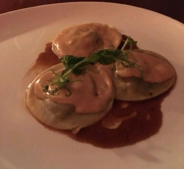 首先先要了一瓶红酒,价格比女娃娃要贵,小菜要了不少,有烤鱼,三文鱼色拉,还有意大利饺子,味道都挺不错的,属于传统意大利菜。
