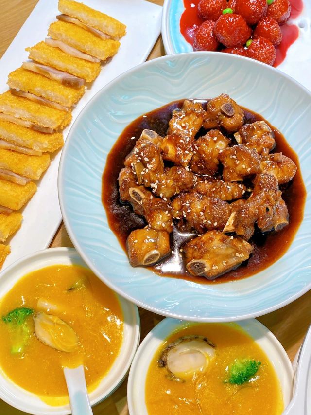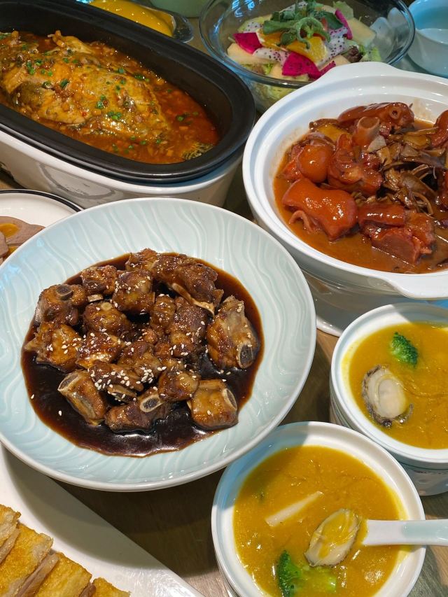 柠檬酸汤巴沙鱼,滋味乌鸡爪,记忆中的紫米糕,皇酱猪肝扒,石锅芸豆丝,铁板双香脆,清炒芥兰头,臭鳜鱼,李鸿章杂烩,泥鳅挂面,糖醋排骨,糖排,生滚鲈鱼,芸豆丝,芦苇南美虾,贡鹅拼盘,卤水牛腩,酒酿桂花羹,半勺卤肉饭,菠萝炸虾,海带丝,刀板香云耳黑豆皮,蓝莓香柚,芦笋炒虾仁,杨梅丸子,坚果酸奶,鱼咬羊,狮子头,徽州臭鳜鱼
