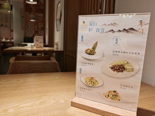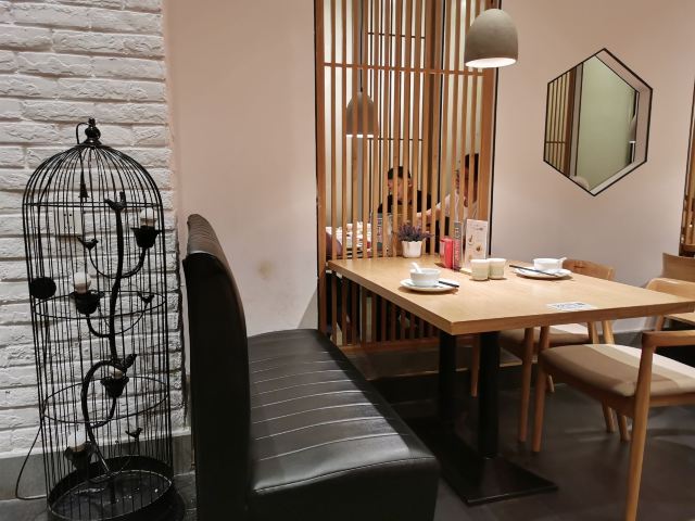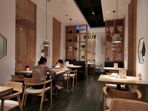 餐厅隐藏在新华书店三楼里,暖光灯光勾勒出大理石的蜿蜒小径,有种曲径通幽处的意境,特意涂白的墙砖,怀旧的竹椅,随处可见的竹子装饰,水泥质感的吊灯,极简又体现了用心。 主营的是本地口味的徽菜,黄酱猪肝扒是必须要点的菜品。