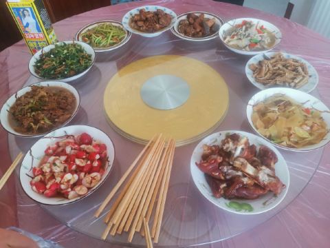 碳烤鸡,生煎包,荞麦糊,特色粉丝煲,红烧肉,炖萝卜,凉拌空心菜,糖藕,红烧猪蹄,梭子蟹炒年糕,炖香菇,剁椒鱼头
