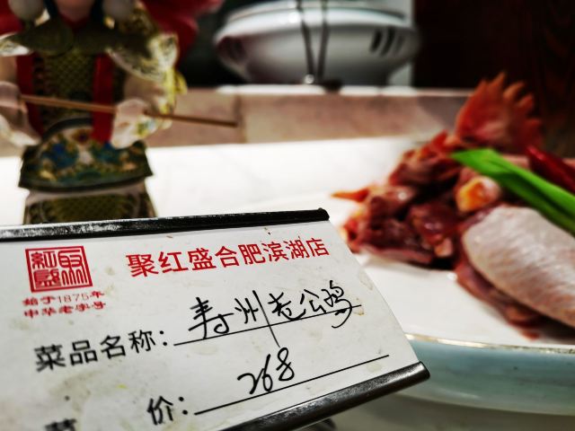 山在穷游来合肥旅游总想吃一些当地的特色,这次朋友带我到了一家百年老店,虽然是寿县的百年老店,但是也能够体现出徽菜的特色。 提到寿县可能很多人很陌生,但是提到聚红盛,我想每一个安徽人都会知道他的大名。因为他们家现在已经走出寿县,在合肥,六安等地都开到了很多门店。 要想到他们家的包间吃饭还真的有些难,必须提前的预约,我们的运气比较好,有一家临时取消了才能走进这精美的包间。 包间的名字也挺有寿县的,特色叫做状元府,点菜可以在1楼进行点,也可以在2楼看菜单点。我们更喜欢在1楼点菜,因为1楼摆放的都是生鲜的样子,我们可以根据食材的选择来挑选自己喜欢的口味。 菜的分量并不是很大,但是每一道菜都做得非常精美,从色香味方面都让我们很喜欢。 总之是一家在合肥值得推荐的徽菜名店。