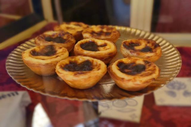 痴痴的饿货非常火的一家百年蛋挞店,地理位置比较偏而且市中心没有分店只此一家,号称是常年排队,老外为了吃也是蛮拼的,不过还好之前看了一些驴友的攻略说可以堂吃,果然看到队伍不用怕往里走,再往里走,里面有个短短的队伍排堂吃的,速度也蛮快的,还可以坐下慢慢吃,不用晒火辣辣的太阳。 先点了一个蛋挞,毕竟觉得天气热多吃会腻,没想到刚吃了一个后又立马再点了一个,非常好吃,首先说外面的酥皮脆脆酥酥刚刚好,不黏厚也不松散,蛋挞心奶油味十足,关键是不甜腻,一口下去酥酥脆脆满嘴的奶香味,很好吃,他们家其他的小点心都是浮云了,个人觉得还是要趁热吃,打包了冷掉了味道就会打点折扣,走过路过的千万不要错过,事实证明后面吃的好多家蛋挞还是这家最好吃。