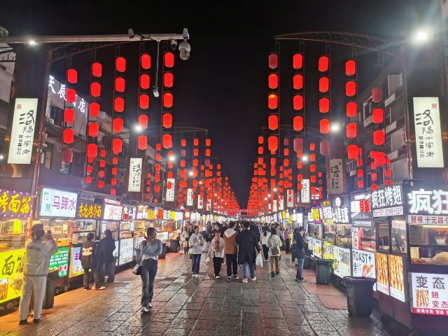 洛阳有名的夜市,下午开始,晚上小吃更多,以一个十字路口为中心,四个方向延伸,价格不贵品种多,游客很多,边上有地铁