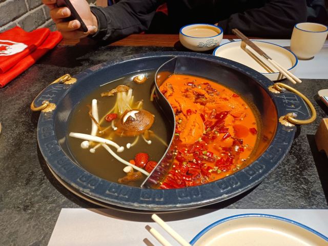 薯条吃不够明星邓伦开的火锅餐厅,很火,去晚需要排队等位。
