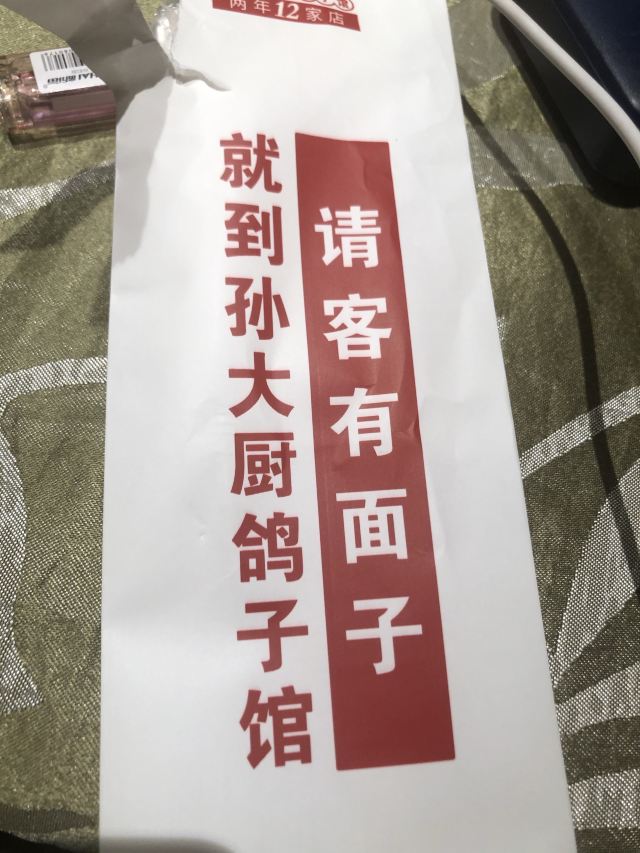 行政执法孙大厨鸽子在石家庄开了很多家店,桥东桥西都有,他们家的特色是烤鸽子,鸽子油炸之后再烤,外皮脆脆的,里面很嫩,一咬满嘴流油,很好吃。他们家自己做的卤味也不错,猪蹄,猪头肉等等,可以拼盘。