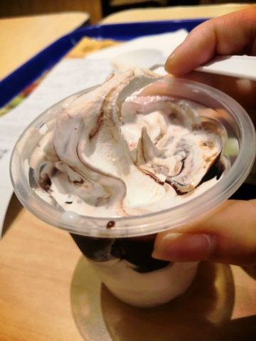 虽然现在是冬天,还非常想吃冰淇淋,尤其是像吃他们家的巧克力圣代。所以就到了这家,还在网上领了他们的免费的薯条,薯条加冰激凌,爽啊!