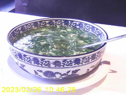 今天,我特意,来这里,,荠菜豆腐羹,,好吃,,少量米饭,,一听椰树椰汁18,,一大盆,,荠菜豆腐羹,,慢慢喝,,凉凉了,,