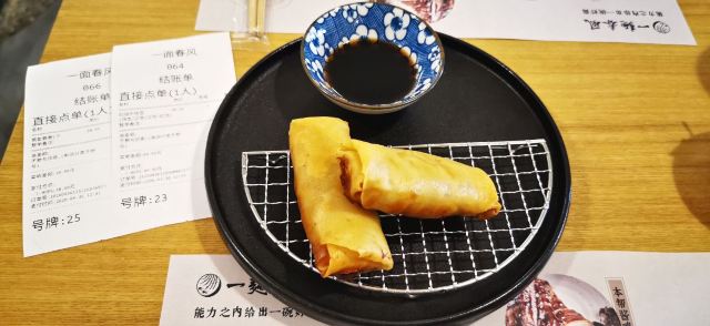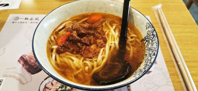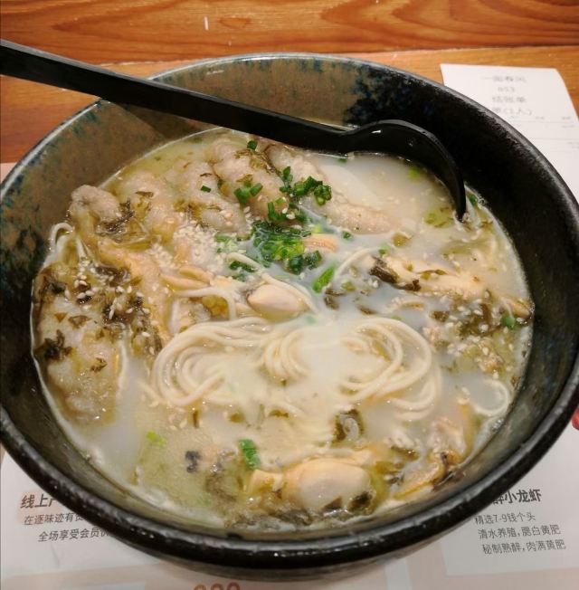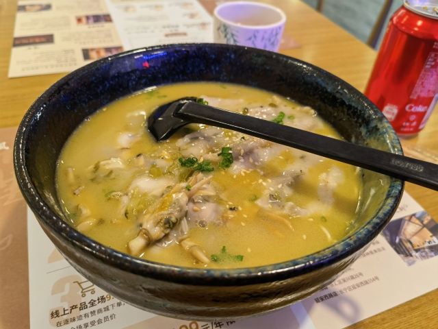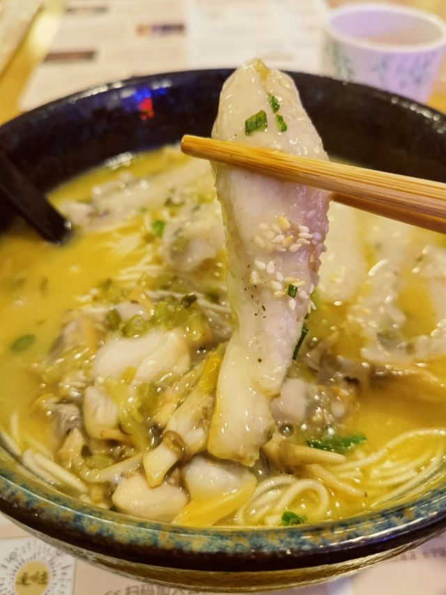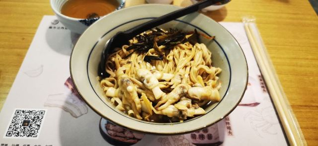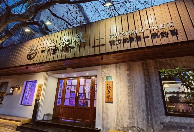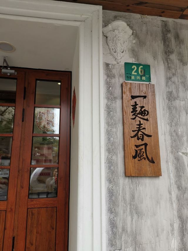 Yimian Chunfeng (Wuxing Road)下雨的晚上就想吃点热的,搜到附近这家一面春风面馆,在吴兴路上比较幽静,招牌很显眼,店里宽敞明亮,木质桌椅简洁。 看菜单面条浇头选择很多,本帮的时令的汤面拌面馄饨都有,比较喜欢黄鱼面,总归是首选。 蛏蛤黄鱼面,这边黄鱼面还加了蛏子蛤蜊,更提鲜味,端上来就很诱人,海鲜味扑鼻,汤是浓汤金黄灿灿非常鲜美,黄鱼去骨浆过,肉质细腻鲜嫩,蛏子蛤蜊个头蛮大很新鲜,总体很不错。