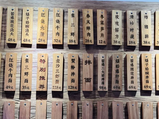 素三鲜面,溏心蛋,双龙拌面,玫瑰酱方,蛏子蛤蜊拌面,炸猪排,醉焖蹄,蟹粉拌面,鸡毛菜,猪油饭,四喜面,炸鸡翅,五白清肺饮,春风辣肉面,葱油拌面,金沙三虾面,蛏蛤爆肝面,卤味金钱菇,玫瑰腐方,鸡汤面,瓜酱鸡