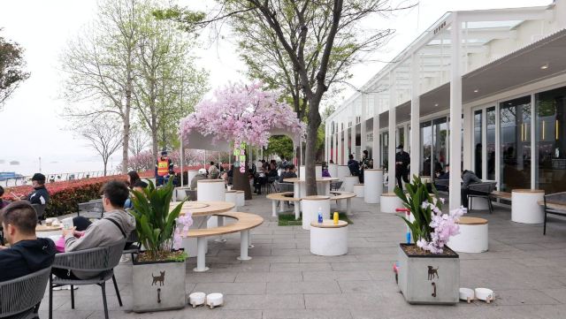 TaleTell這個位置這麽多年,前前後後換了好多家店都沒有存活,現在終於換成了星巴克~雖然,櫻花季的假櫻花有點出戲~但是這家星巴克好有愛啊~因為就在濱江邊上,這裏平時是很多人遛狗和狗朋友聚會的地方,所以這家星巴克在門口戶外位置,增加了好些供栓寵物的墩子花盆,還有寵物食盆,真心可愛了! 地理位置很好,天氣好的時候,吹著江風特別舒適~ 發現最近星巴克更新升級了好些產品,現在周邊做得越來越豐富了,點心也開始走視覺系了! 沙漠蛋糕外層居然是黃豆粉,很創新的口味,裏面是茶味蛋糕,然後外層結合了老上海點心經常會用的黃豆粉,不甜膩,還是不錯的。 綠色星球是綠茶口味的,黑巧克力星球,然後裏面還有咖啡味的奶油,不會很甜。 新出的燕麥奶就~為什麼是甜的呢?